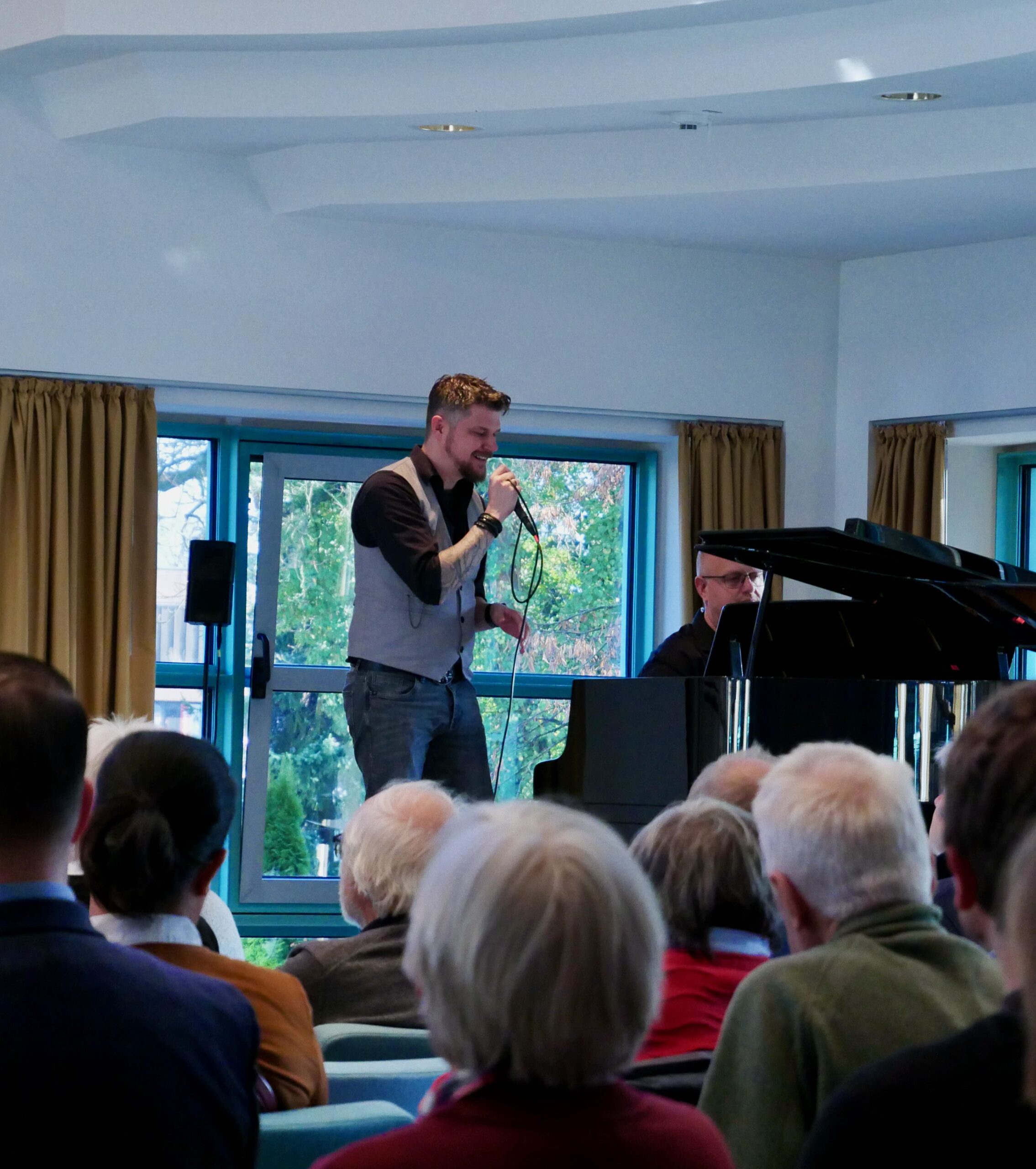 Abgerundet wurden diese bedeutenden Gedanken durch die musikalischen Beiträge von Herrn Krüger und Herrn Gagelmann (Musiklehrer am Gymnasium). Die beiden schufen mit zwei Friedensliedern eine nachdenkliche und zugleich hoffnungsvolle Atmosphäre für ein besseres Morgen.