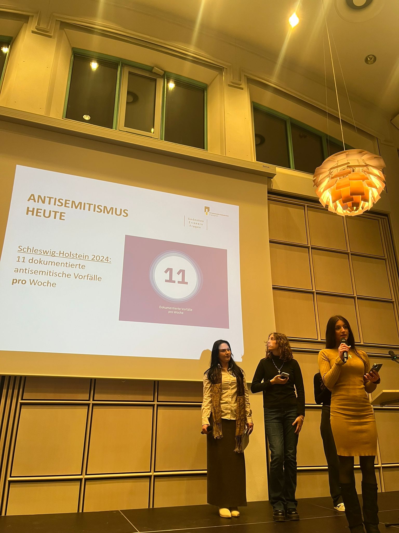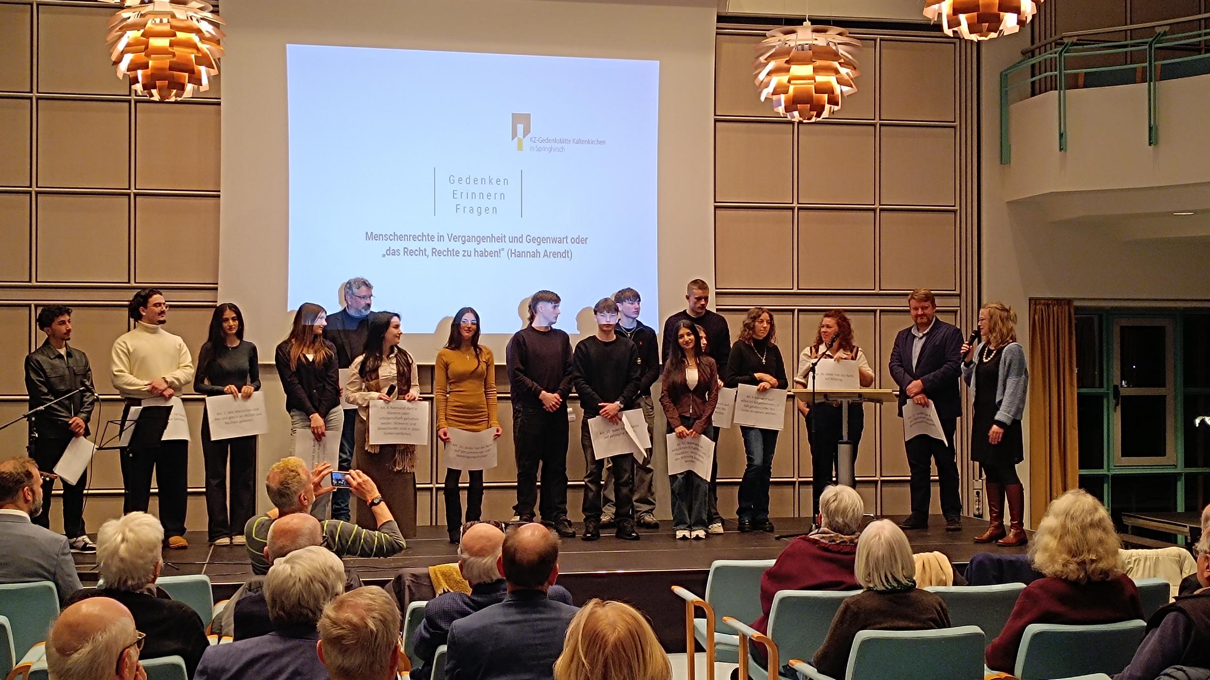 Schülerinnen und Schüler unseres Religionskurses 10b gestalteten die offizielle Gedenkveranstaltung der KZ‑Gedenkstätte Kaltenkirchen am Tag des Gedenkens an die Opfer des Nationalsozialismus im Rathaus. Zwischen den Redebeiträgen von Bürgermeister Stefan Bohlen und den musikalischen Beiträgen von Alexandra Lachmann präsentierten vier Schülergruppen unter Leitung ihres Lehrers Dominik Zuk ihre erarbeiteten Beiträge. Trotz des öffentlichen Rahmens zeigten die Jugendlichen eine bemerkenswerte Souveränität.