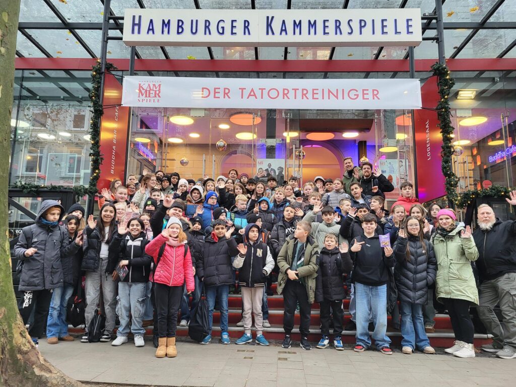Passend zur Unterrichtslektüre „Rico, Oskar und die Tieferschatten“ besuchten die 5. Klassen am 12.12.2025 die gleichnamige Aufführung der Hamburger Kammerspiele. Für viele Kinder war es der erste Theaterbesuch ihres Lebens – entsprechend groß war die Aufregung. Die Geschichte der beiden ungleichen Freunde beschäftigt die Schülerinnen und Schüler bis zu den Weihnachtsferien. Dann wird auch der Film gemeinsam in der Aula geschaut. (Text & Bild: A. Weißer)