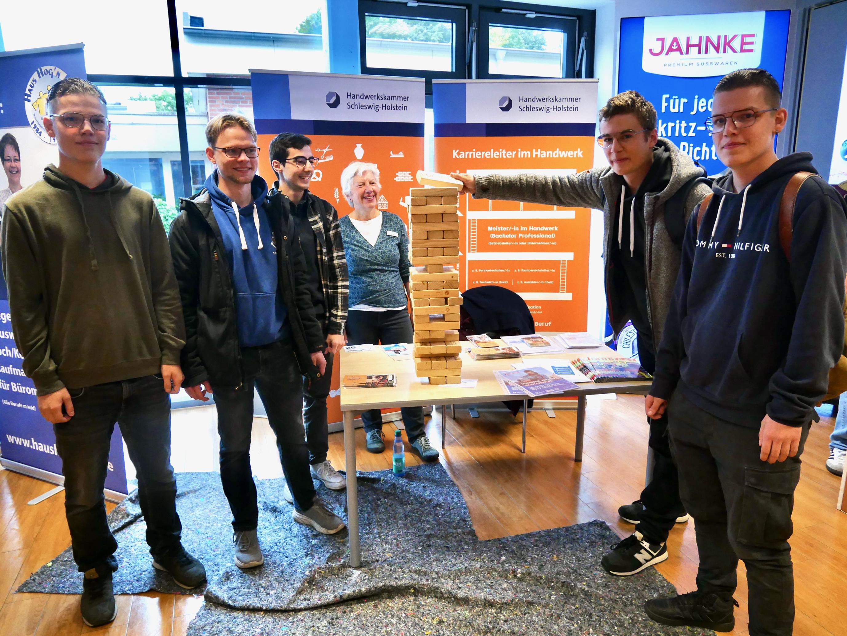 Über 60 Ausbildungsbetriebe und Institutionen fanden sich ein und präsentierten ihr Unternehmen. Insgesamt boten sie über 100 Ausbildungsberufe an.  Dabei setzten einige auf handwerkliches Tun, um mit den jungen Menschen in den Kontakt zu kommen. So durfte man sich bei der Stadt Kaltenkirchen hübsche Pflanzen in einem Filzkorb zusammenstellen und mit nach Hause nehmen. Der Baumarkt Globus erfreute mit einem Glücksrad die Besucher mit unterschiedlichen Geschenken, und bei der Handwerkskammer kam es auf die ruhige Hand an, denn es galt, einen Holzturm immer höher zu bauen.